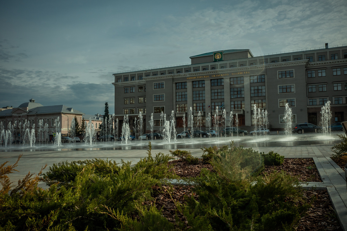 После реконструкции площади в 2020 году на ней появился «сухой» светомузыкальный фонтан: вода бьет из-под поверхности и тут же отводится обратно в подземный резервуар. С 20:00 до 21:00 выход столпов воды из-под брусчатки сопровождается музыкой, а с 21:00 до 22:00 — светопредставлением. У подсветки есть несколько вариантов, которые чередуются между собой.
