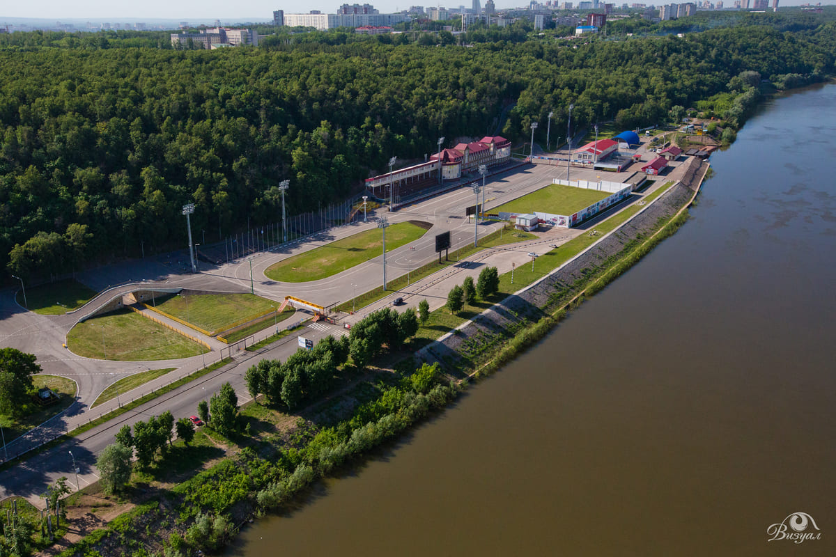 Комплекс, расположенный на берегу реки Белой, включает несколько объектов: гостиницу, кафе, бар, стадион, стрельбище, а также лыжероллерные и кроссовые трассы, где занимаются профессиональные спортсмены и любители. Здесь находятся две трибуны: на 3000 и 1000 мест. На территории есть гостиница «Биатлон», она рассчитана на 170 гостей, номерной фонд включает «стандарт», «комфорт», «полулюкс» и «люкс». У здания есть спортивные площадки, оборудованный спортзал и сауна.